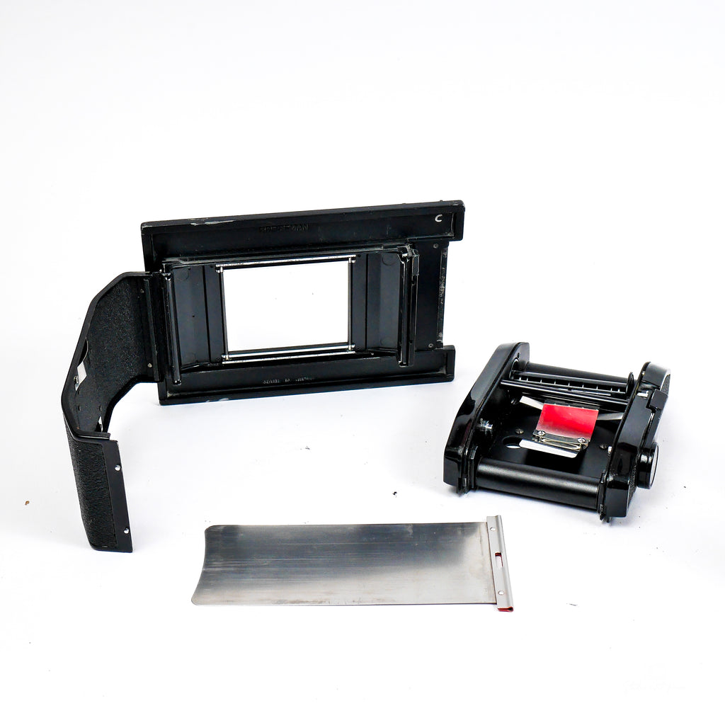 Dos Horseman 6x7 pour film 120, sur plaque 4x5. En bon état sauf les mousses qui sont à changer.