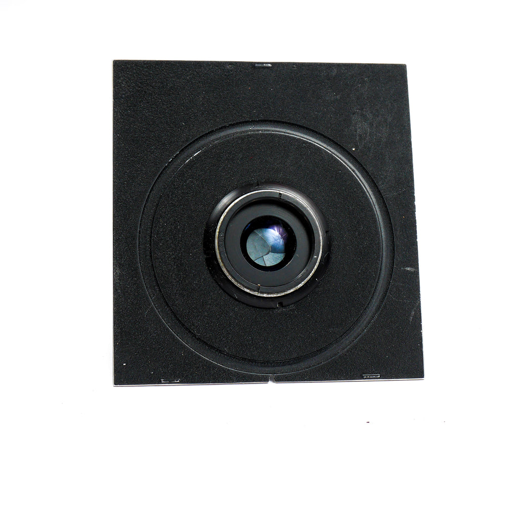 Objectif Angulon 90mm f:6.8 en bon état. Les lentilles sont propres, le diaphragme impeccable. Il est monté sur un obturateur Synchro-Compur et une platine Linhof Technika plate.