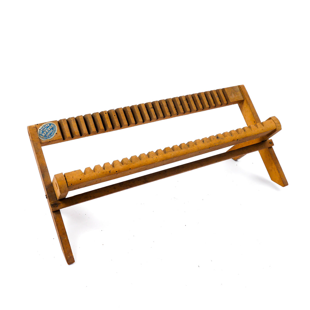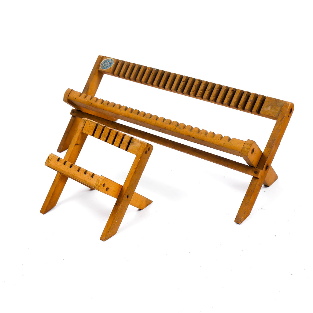 Lot comprenant deux sechoir à plaque de verre ancien, en bon état. (Traces de vrillettes inactives) et une boite de papier ancien Lumière VIRA au format 6.5x9cm. 20 feuille de papier auto-Vireur.
