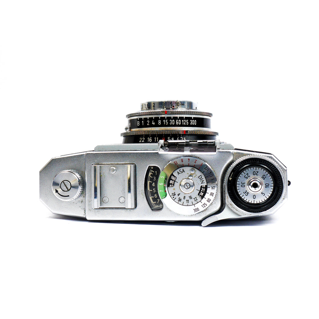 35mm camera dating from the late fifties. In nice cosmetic condition. It was fully tested and is working, except for: