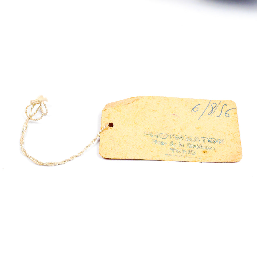 It is rare to find these camera along with their build label. This one come with it, indicating all it’s equipmant. The serial number on the label match the one on the camera. On the back of the label, we found a stamp from the “Photomaton” shop in Tunis, Tnisia with the date 06/08/56.